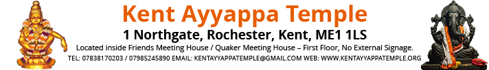 For donations, sponsorship or membership enquiries & further information Email: kentayyappatemple@gmail.com or Tel: 07838170203 / 07753188671 / 07478728555 / 07985245890 / 07507766652.
